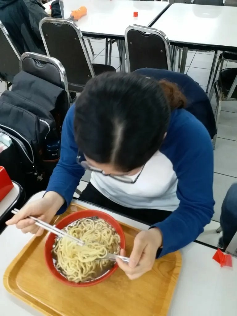於是,我們就看到×柔不動聲色地把排骨壓到麵的下方,藏起來。