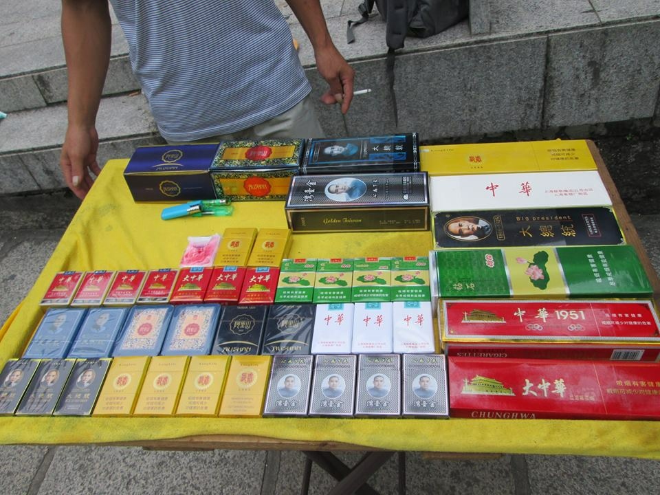 路上有人在賣「台灣免稅香菸」。