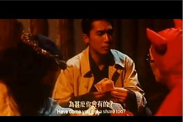 梁朝偉和陳小春的電影「王牌神棍」有這一幕: