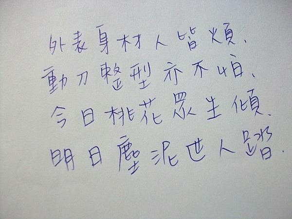 「今日桃花眾生傾,明日塵泥眾人踏。」