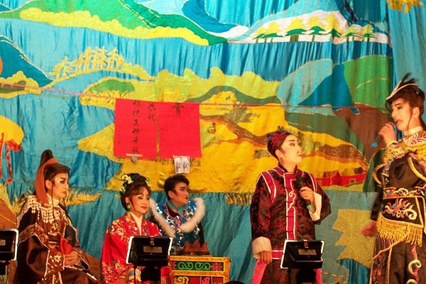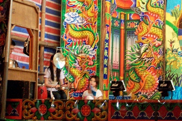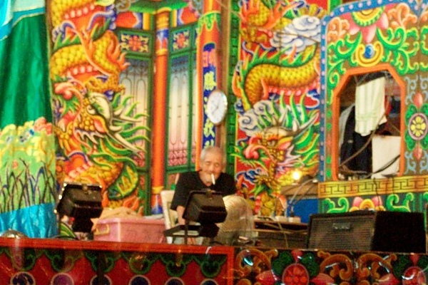 另一側的舞台邊,這位看起來像是班主的阿公,