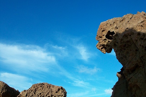 從岩石之間看過去,天空特別清藍吧。
