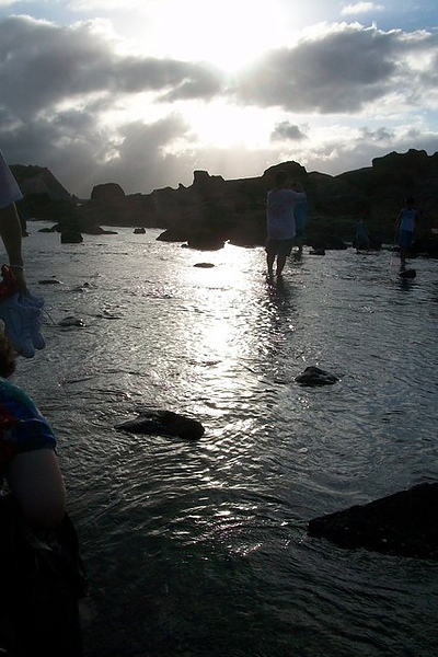 快是夕陽了。海水很涼,大家都捨不得走。