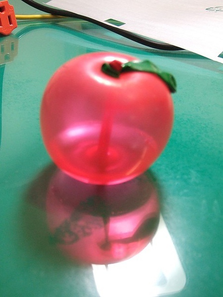 是蘋果氣球,裡面有水喔,咬一口絕對是香甜多汁。