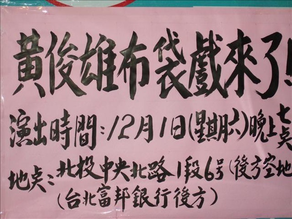 週6就聽說黃俊雄布袋戲要到北投來開演了!