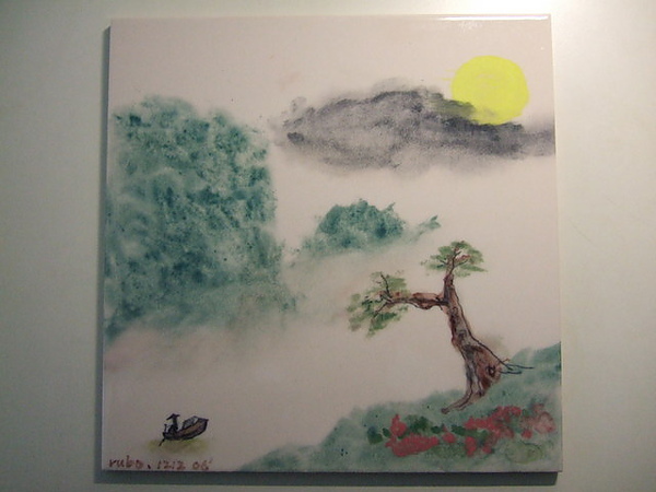 其實就是瓷磚,在沒上釉燒過的素磚上作畫,